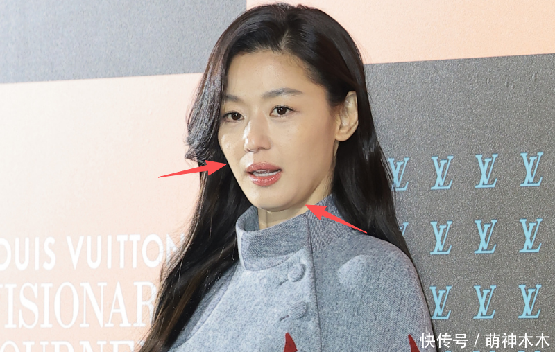 在风波之前,全智贤最爱营销的就是美貌,风波之后的容貌也是“见光死”,脸部垮了许多,双下巴不用多说,法令纹强光都遮不住。脸部肌肉坑坑洼洼,尤其是下巴直接变形,十分不自然。